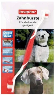 Beaphar szczoteczka do zębów, w połączeniu z pastą do zębów to produkty oferujące optymalną ochronę zębów psa. Wcześnie formująca się płytka nazębna musi być usuwana, aby zapobiec brzydkiemu zapachowi i próchnicy zębów. Dwugłowicowa Szczoteczka Beaphar może być używana przez wszystkie psy różnych rozmiarów. Szczoteczka jest specjalnie ukształtowana tak, aby możliwie jak najlepiej przystosowywała się do zębów psa. Poszczególne rzędy włosia pozwalają wyczyścić wszystkie zęby oraz przestrzenie międzyzębowe, dlatego problem z dotarciem do trudno dostępnych miejsc nie istnieje. Gumowany, wzmocniony uchwyt pozwala na bezpieczną obsługę i prowadzenie szczoteczki. Ponadto miękkie i elastyczne włosie zapewnia dokładne czyszczenie zębów i delikatną pielęgnację wrażliwych dziąseł.