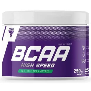 Trec BCAA High Speed - doskonałe dopełnienie suplementacji okołotreningowej, której zadaniem jest zarówno zabezpieczenie tkanki mięśniowej przed katabolizmem, jak i wsparcie jej regeneracji oraz rozwoju. Jest to jeden z najpopularniejszych typów suplementów, których uniwersalność jest jedną z wielu zalet. Sięgnij po profesjonalny produkt w dobrej cenie, dla każdego. • Wysokiej jakości BCAA 2: 1: 1, których formuła wolna jest od zbędnych dodatków• Każda porcja to solidna dawka aminokwasów rozgałęzionych o znakomitej przyswajalności• Bardzo dobrze się rozpuszcza (jest to wersja instant) i jeszcze lepiej smakuje• Chroni tkanki, w tym mięśnie przed szalejącym katabolizmem okołotreningowym• Sprzyja znacznej poprawie regeneracji powysiłkowej oraz wykazuje właściwości pro anaboliczne• Działa dodatnio na aktywację szlaku mtor, pomaga w utrzymaniu dodatniego bilansu azotowego• Ogranicza bolesność mięśni spowodowaną przez mikrourazy (doms)• Oddala poczucie zmęczenia podczas.