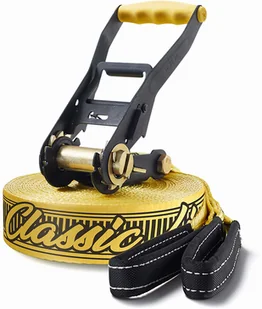 Slackline: Kategoria: Zestaw Slackline; Poziom wydajności: początkujący, zaawansowany, dzieci; Materiał wstęgi: Poliester; Wymiary: szerokość taśmy (mm): 50; Długość paska: