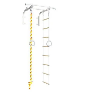 40. 5 cm Szerokość: 85,5 cm Kolorystyka: niebieski, srebrny Obciążenie: 100 kg WYPOSAŻENIE drążek przesuwny drabinka linowa lina kółka W zestawie z drążkiem rozmaite akcesoria gimnastyczne do ćwiczeń, które pozwalają łączyć ćwiczenia i zabawę.