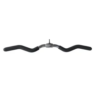 Stalowy uchwyt łamany do wyciągu górnego lub dolnego, stosowany w ćwiczeniach angażujących mięśnie bicepsów i tricepsów. Umożliwia zarówno szeroki, jak i wąski chwyt, co pozwala na różnicowanie ćwiczeń i angażowanie mięśni do pracy pod różnym kątem.