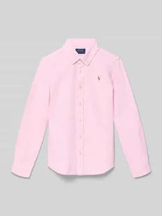 Bluzka koszulowa dziecięca Polo Ralph Lauren Teens;Model ‘Trinetteox-Shirts-Button’;Efekt: jednolity kolor;Krój: Krój regular fit ;Kształt kołnierza: Kołnierzyk typu button down;Aplikacja: Wyhaftowane logo;Detale: