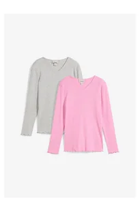 bonprix Prążkowana bluzka, z bawełną organiczną (2 szt.) szary