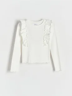 Reserved - Bawełniana koszulka z falbankami - złamana biel