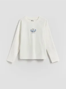 Reserved - Koszulka z nadrukiem na plecach Lilo i Stitch - złamana biel