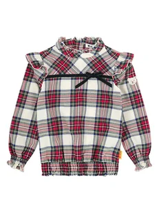 Bluzka w kolorze biało-czerwono-zielonym - dekolt: okrągły - zapięcie: suwak na plecach - detale: przymocowana kokardka, falbanki - krój: luźny - wzór: kratka