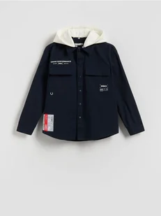 Reserved - Bawełniana koszula z kapturem - granatowy
