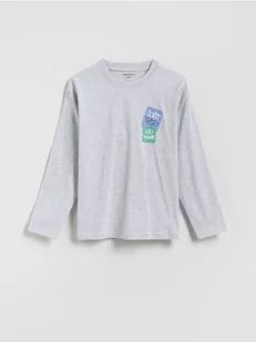 Reserved - Bawełniany longsleeve - jasnoszary