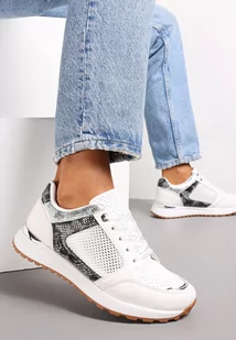 Białe Płaskie Sneakersy Przed Kostkę z Ozdobną Cholewką Tritari
