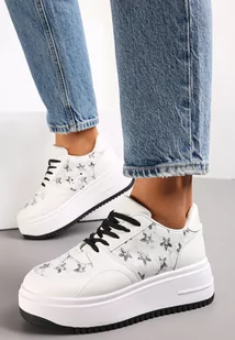 Biało-Czarne Sneakersy na Platformie Zdobione Printem Kwiaty Alilena