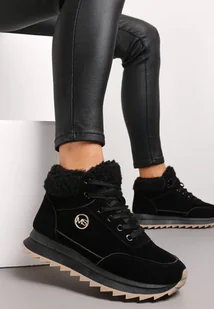 Czarne Zimowe Sneakersy ze Sztucznym Futerkiem Turelia