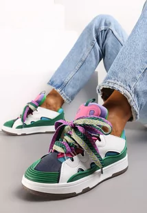 Zielone Sneakersy z Dekoracyjnym Sznurowaniem i Wstawką na Języku Cristen