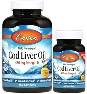 Carlson Labs Sklep CARLSON LABS WILD NORWEGIAN COD LIVER OIL 460MG - 150+ 30 KAPSUŁEK