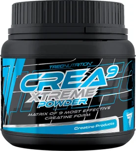 Trec Crea 9 to skupisko wysoce przyswajalnych form kreatyny. Znajdziesz tutaj m.in. jabłczan, cytrynian i alfaketoglutaran (AKG) kreatyny. Są to postaci kreatyny, w których została ona sprzęgnięta z substancjami (AKG, kwas jabłkowy i cytrynowy) będącymi substratami w tlenowych przemianach energetycznych.