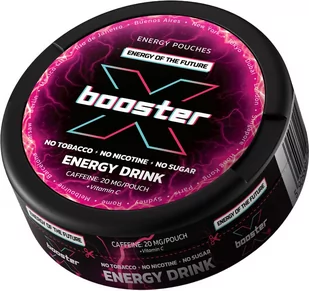 Woreczki energetyczne X-Booster z aromatem Energy Drink 20 mg/woreczek SKŁAD: celuloza (E469), woda, środki aromatyzujące, środek regulujący pH (E501), kofeina, sól, tauryna, substancja chłodząca, substancja słodząca (E955), środek konserwujący (E202), witamina C (E300). WAGA: 13 g - 20 woreczków po 0,65 g. Zawartość kofeiny w jednej dawce: 20 mg/woreczek.