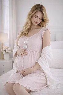 Koszula do karmienia Basia COALA w rozmiarze s- pudrowy róż w serduszka/groszki Koszulka do karmienia i na ciążę „Basia” - rozpinana na napy, pod biustem gumka, do której doszyty jest pomarszczony dół koszulki, świetnie mieści rosnący brzuszek, może również służyć jako szlafroczek. Dostępne rozmiary S-XXL Wymiary: S - Biust 90 cm, długość od ramienia 90 cm, M - Biust 92-94 cm, długość od ramienia 92 cm, L - Biust 96-98 cm, długość od ramienia 94 cm, XL - Biust 98-100 cm, długość od ramienia 94 cm, XXL- Biust 100-102 cm, długość od ramienia 96 cm, Skład : 100% bawełny, Polski Produkt