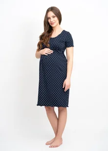 Granatowa koszula w serduszka dla kobiet w ciąży, z przewiewnej i komfortowej bawełny. Miękko układa się na sylwetce. Koszula nocna została zaprojektowana sp...