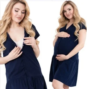 Koszula ciążowa do karmienia z napami – granatowa, M, Mamiluna