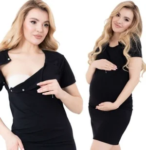 Koszula ciążowa i do karmienia z dekoltem kopertowym – czarna, XL, Mamiluna