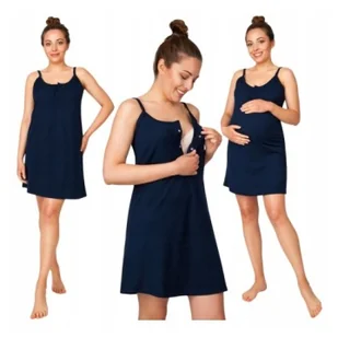 Koszula Nocna Na Ramiączkach Ciążowa Bawełniana Granatowa Do Szpitala M