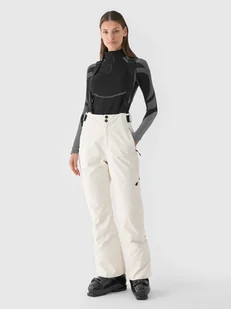 To połączenie technologii z estetyką i funkcjonalnością tworzy niezbędny element wyposażenia dla pasjonatów zimowych sportów, którzy oczekują najwyższej jakości i niezawodnej ochrony w każdych warunkach. Posiadają krój regular, który wygodnie dopasowuje się do sylwetki oraz nogawki regulowane za pomocą bocznego zamka. Sprawdź: Jak dobrze wybrać spodnie narciarskie/ snowboardowe? Spodnie narciarskie dla kobiet z membraną Dermizax 20000 Spodnie narciarskie 4F damskie z solidną, poliuretanową membraną Dermizax 20000 japońskiej firmy Toray, która jest odporna na ekstremalne warunki pogodowe, intensywne opady deszczu i śniegu oraz porywisty wiatr. Lekkie i odporne na wilgoć wypełnienie PrimaLoft Black Insulation to izolacja, która łączy w sobie skuteczność z właściwościami oddychającymi. Posiada wszystkie cechy wydajnej termicznie ociepliny, a ponadto zapewnia miękkość, pakowność i sprężystość.