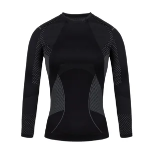 Bluza termoaktywna damska Alpinus Active Base Layer czarno-szara GT43180 Termoaktywna bluza damska Alpinus Acitve z linii Outdoor jest niezawodna podczas aktywności w trudnych warunkach pogodowych. System Thermo gwarantuje solidną ochronę przed chłodem. Konstrukcja Double Layer odpowiada za odprowadzanie wilgoci na zewnątrz. W miejscach o wzmożonej potliwości zaprojektowano strefy wentylacyjne Vent Areas. Szybkoschnący materiał Quick Dry wykazuje niskie parametry chłonne.