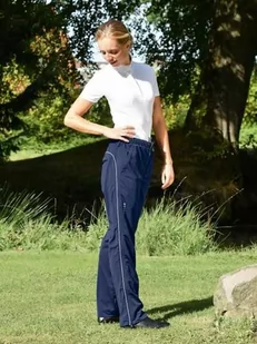 Praktyczne spodnie ochronne zapinane na zamek błyskawiczny z boku nogi. Świetnie chronią białe bryczesy przed zabrudzeniami podczas oporządzania konia na zawody. W pasie elastyczne, ze sznurkiem do ściągnięcia. Z przodu dwie kieszenie, z tyłu jedna zapinana na zamek. Kolor: granatowy. . .