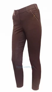 Bryczesy z pełnym lejem z ekonomicznej linii Euro-Star. Coś nowego dla tych, którzy cenią sobie jakość i wygodę bryczesów Euro-Star, ale woleliby przeznaczyć na zakup mniejszą kwotę. Przy kieszeniach bryczesy ozdobione są drobnymi, metalowymi ćwiekami. Posiadają szlufki do paska oraz dwie kieszonki z przodu. Nogawki zapinane na rzepy.