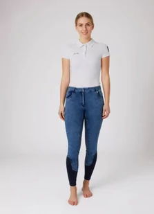 Bryczesy damskie DELIA - Horze Wykonane z oddychającego, elastycznego materiału, przypominającego wyglądem jeans. Doskonale sprawdzą się podczas codziennych treningów, również w letnie miesiące. Pełny lej silikonowy zapewnia odpowiednią przyczepność do siodła. Elastyczne wstawki na nogawkach, ułatwiają zakładanie i zdejmowanie spodni. Bryczesy mają średni stan, który nie krępuje ruchów i zapewnia wygodę podczas jazdy.