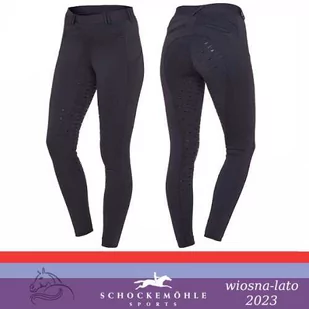 Legginsy jeździeckie damskie SPORTY RIDING FS SS23 - SchockemohleSportowe legginsy jeździeckie, wykonane z elastycznego, komfortowego materiału. Idealny wybór nawet w ciepłe dni dzięki oddychającemu, szybkoschnącemu materiałowi. Po bokach znajdują się ozdobne, silikonowe napisy z logotypem. Z pełnym, silikonowym lejem dla lepszej przyczepności. Posiadają boczne kieszonki na udach.