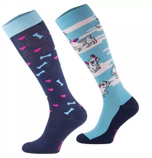 Grube jeździeckie skarpetki z podwójnym ściągaczem. Posiadają system amortyzujący wstrząsy. Dodatkowy ściągacz na wysokości kostki utrzymuje skarpetkę w miejscu. W okolicach palców i pięt wzmocnione. W okolicach palców szwy wygładzone dla większego komfortu noszenia.