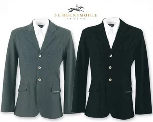 Tradycyjna marynarka jeździecka wyprodukowana przez firmę Schockemöhle. Dzięki użytym do jej uszycia innowacyjnym materiałom i zgrzewanym szwom nie przyjmuje brudu, jest w pełni wodoodporna, a jednocześnie zapewnia cyrkulację powietrza. Świetnie skrojona i dopasowana, elastyczny materiał pozwala na pełną swobodę ruchów. Podwójne rozcięcie z tyłu - idealnie układa się w siodle. Zapinana na trzy guziki, logo wyszyte na klapie lewej kieszeni.