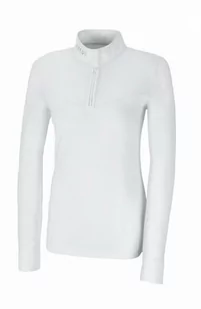 Bluzka konkursowa ELONIE - PikeurElegancka bluzka konkursowa z długim rękawem. Dzięki elastycznemu materiałowi nie krępuje ruchów. Rękawy wykonane z delikatnej siateczki która zwiększa cyrkulacje powietrza. Mankiety oraz stójka wykończone sztywniejszym, eleganckim materiałem w kolorze białym. Zapięcie pod szyją za pomocą napów zostały przykryte listwą ozdobioną srebrnymi kryształkami.
