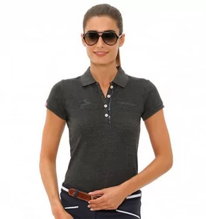 Koszulka polo z cekinowym paskiem przy guziczkach.Logo delikatnie błyszczy.Dopasowana i wygodna.Kolor: szary ciemny...