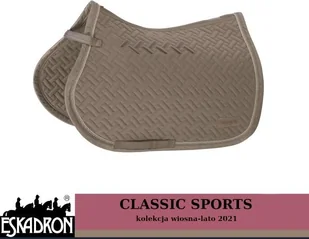 Potnik DURAWOVEN - CLASSIC SPORTS wiosna-lato 2021 - EskadronWykonany z zewnątrz z odpornego, mocnego materiału dura. Na grzbiecie kanał z siatki który zwiększa cyrkulacje powietrza. W miejscu siodła silikonowe wstawki które zapobiegają przesuwaniu się go. Posiada paski na rzep do przystuł oraz szlufki na popręg. Obszyty dookoła trzema ozdobnymi sznureczkami.