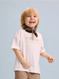 Reserved - Bawełniany t-shirt z nadrukiem - złamana biel