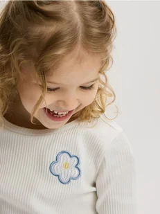 Reserved - Koszulka z haftem - złamana biel