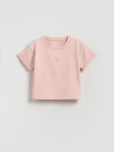 Reserved - Luźny t-shirt z haftem - pastelowy róż