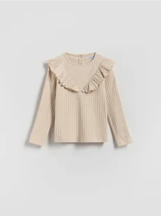 Reserved - Prążkowana koszulka z falbaną - beżowy