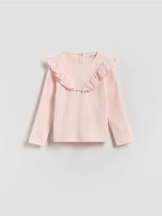 Reserved - Prążkowana koszulka z falbaną - pastelowy róż