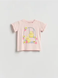 Reserved - T-shirt z aplikacją - różowy