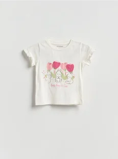 Reserved - T-shirt z aplikacją - złamana biel