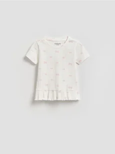 Reserved - T-shirt z falbanką - złamana biel