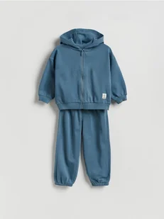 Komplet składający się z bluzy i spodni, wykonany z bawełnianej dzianiny.