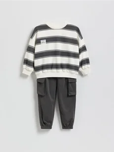 Komplet składający się z bluzy i spodni, wykonany z bawełnianej dzianiny.