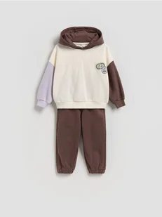 Komplet składający się z bluzy i spodni, wykonany z bawełnianej dzianiny.