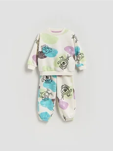 Komplet składający się z bluzy i spodni, wykonany z bawełnianej dzianiny.