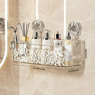 1 szt. Koszyk wiszący Orbasket na przyssawkę z dekoracją w kształcie królika i kokardki, nowoczesna półka łazienkowa z tworzywa sztucznego, organizer