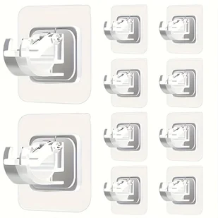 TEMU 10 szt. Łatwe w Montażu Uchwyty na Karnisze Bez Wiercenia - Samoprzylepne, Bez Gwoździ, Uchwyty Ścienne do Domu i Hotelu, Haków Użytkowych