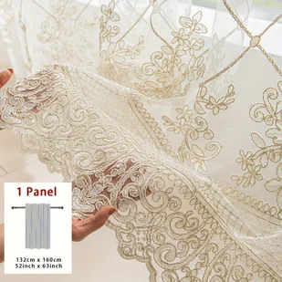 1PC Francuska siatka koronkowa biała przezroczysta zasłona okienna, kieszeń na drążek, wiele sposobów wieszania, nowoczesna geometryczna brokatowa,